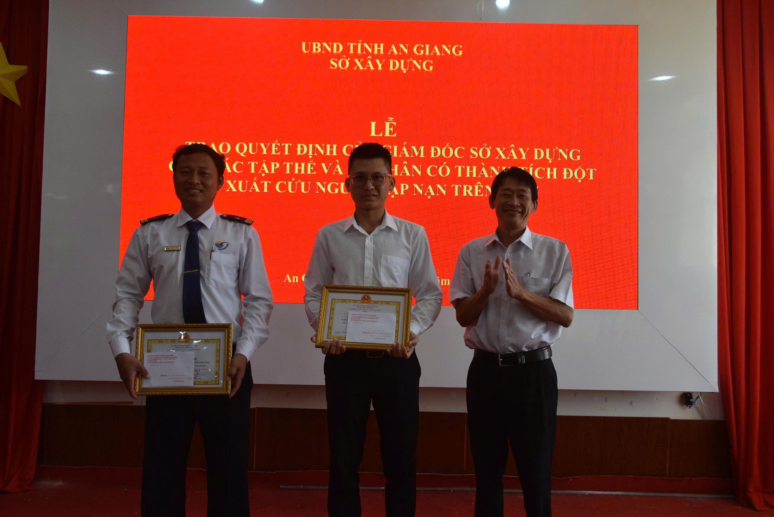 Sáng ngày 01/10/2025, Sở Xây dựng tỉnh An Giang tổ chức Lễ công bố và trao Quyết định khen thưởng đột xuất của Giám đốc Sở Xây dựng tỉnh An Giang cho 02 tập thể và 02 cá nhân đã có thành tích cứu người gặp nạn trên biển.