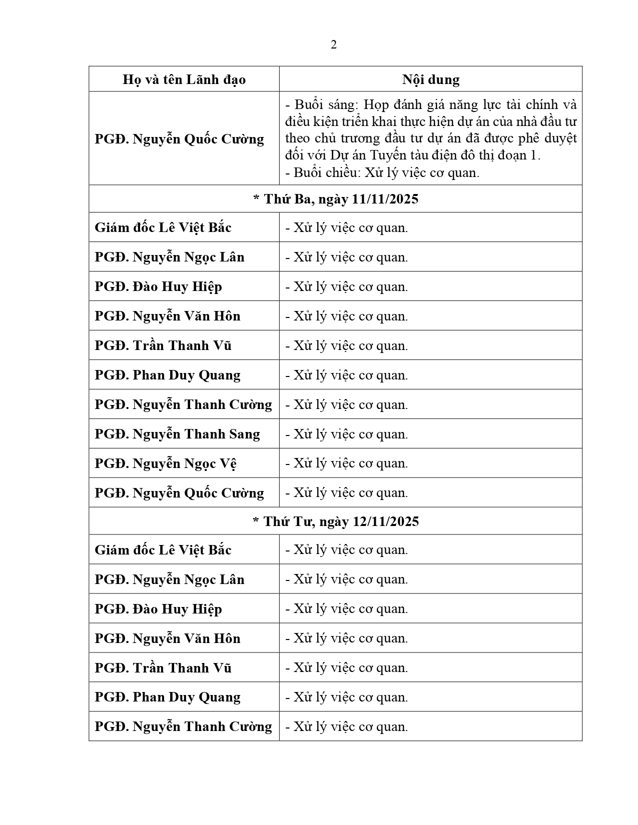 Lịch làm việc của Lãnh đạo Sở Xây dựng tỉnh An Giang, từ ngày 10/11/2025 đến ngày 16/11/2025