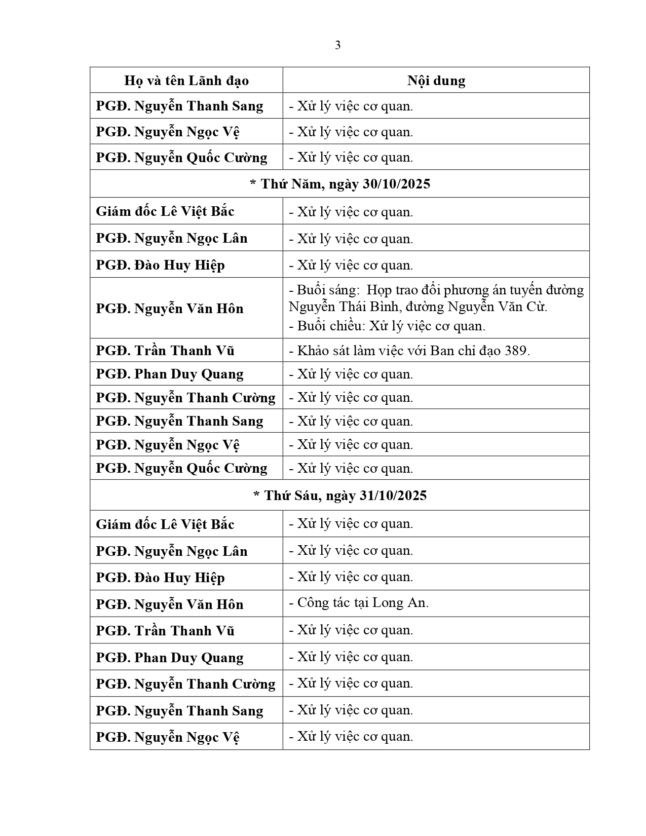 Lịch làm việc của Lãnh đạo Sở Xây dựng tỉnh An Giang, từ ngày 27/10/2025 đến ngày 02/11/2025