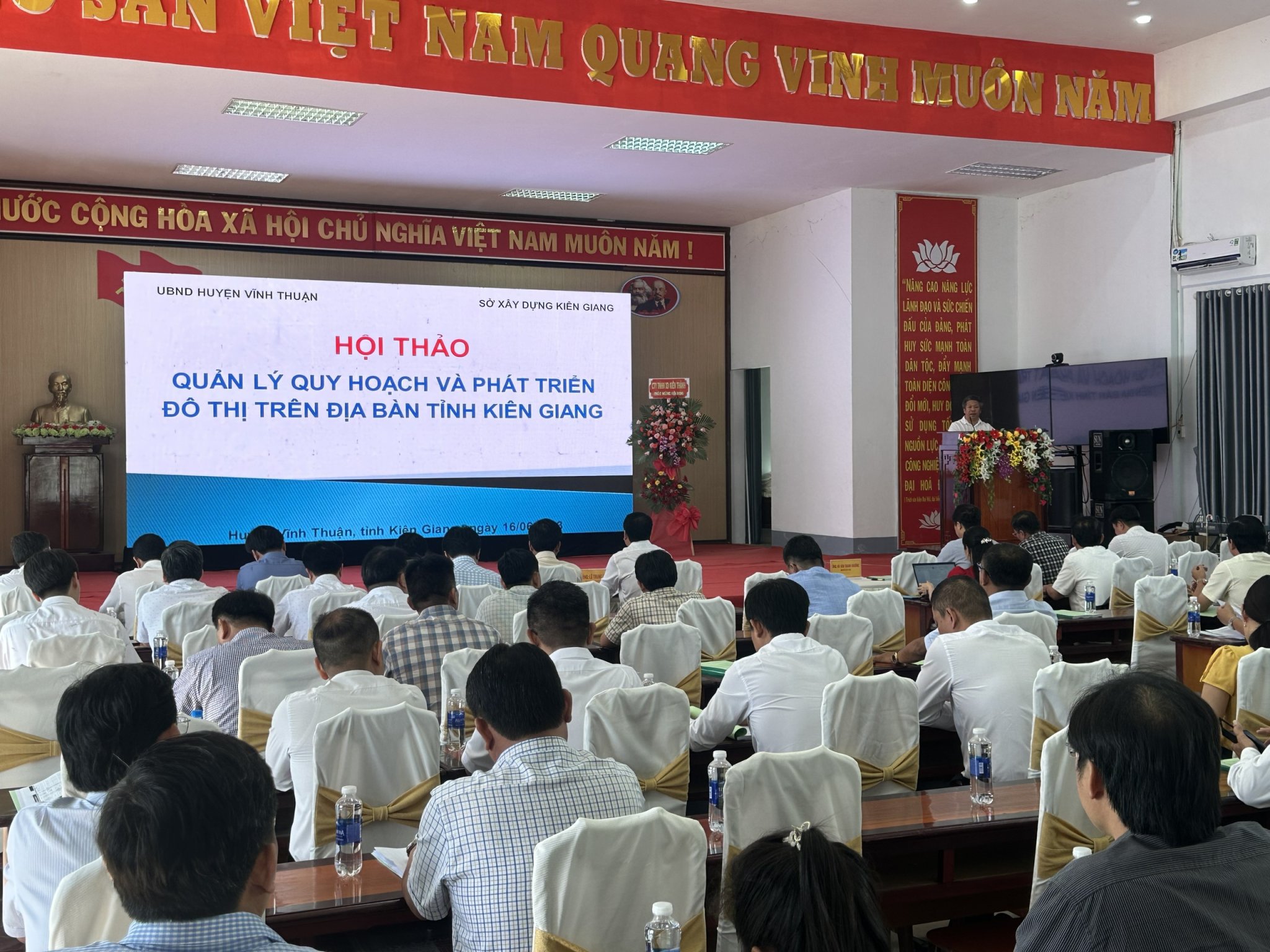 Được sự chấp thuận của UBND tỉnh cho tổ chức Hội thảo quy hoạch và phát triển đô thị trên địa bàn tỉnh Kiên Giang theo đề xuất, kế hoạch của Sở Xây dựng. Sáng ngày 16/6/2023, Sở Xây dựng tỉnh Kiên Giang đã phối hợp với UBND huyện Vĩnh Thuận (Kiên Giang) tổ chức Hội thảo quản lý quy hoạch và phát triển đô thị trên địa bàn tỉnh Kiên Giang.