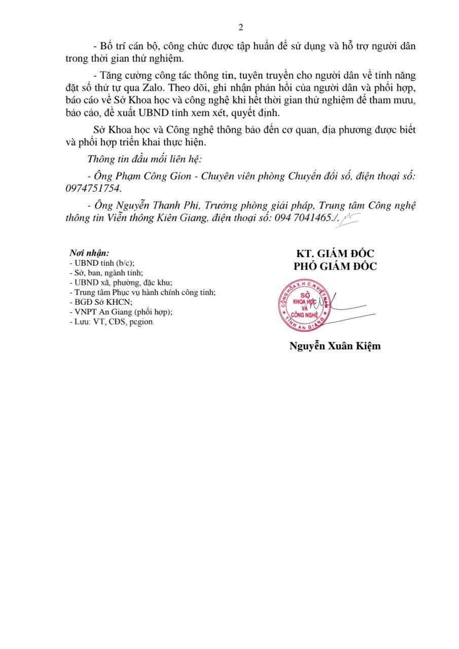 Thông báo Về việc triển khai Ứng dụng lấy số xếp hàng tự động thông qua ứng dụng Zalo khi thực hiện thủ tục hành chính